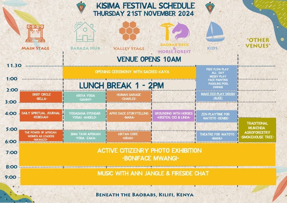 Kisima Festival celebrates wellbeing, connection, and community through a diverse lineup of activities, including holistic workshops, music, and cultural experiences.